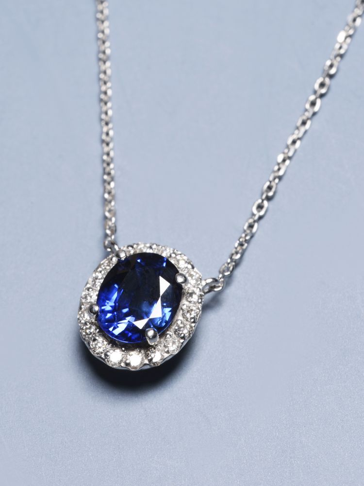 메인스톤에는 블루사파이어를, 서브스톤에는 다이아몬드를 헤일로세팅하여